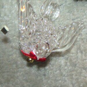 Vintage Clear Spun Glass Crystal Bird Hanging Christmas Holiday Ornament