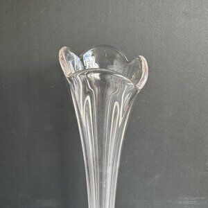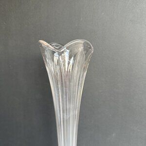 Vintage Clear Swung Glass Tulip Fluted Ribbed Vase MCM 17" Tall Stretched Vase