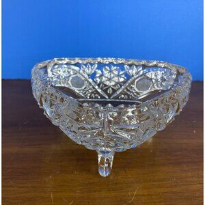 Vintage Clear Tri-Footed Triangle Cut Glass Dish No Lid Star Design