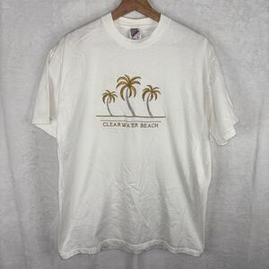 Vintage Clearwater Beach Florida T-shirt Palm Trees Size Large White Jerzees Tag