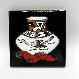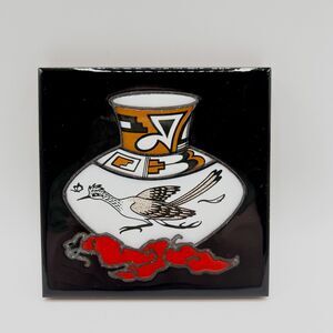 Vintage Cleo Teissedre Ceramic Tile Roadrunner Pottery Hand Painted Southwest 4"