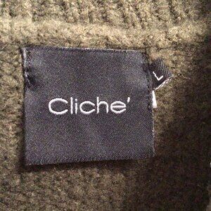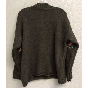 Vintage Cliche Floral Embroidered Mock Neck Pullover Sweater Green Size Large