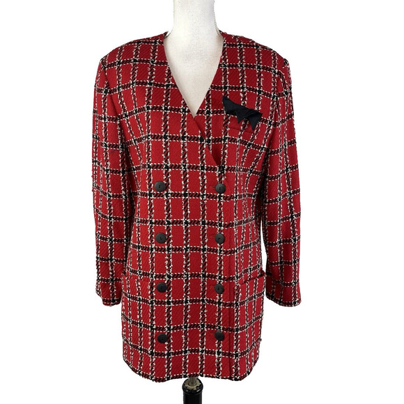 Vintage Clifford & Willis Red Black Wood Plaid Blazer Jacket sz 16 Career Suit