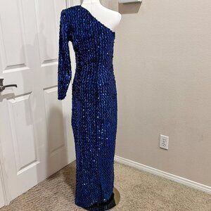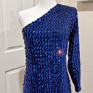 Vintage Climax by David Howard Royal Blue Sequin One Shoulder Dress in Size 9/10