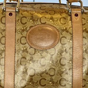Vintage Céline CELINE C Macadam Horse Carriage Hand Bag Beige PVC Leather
