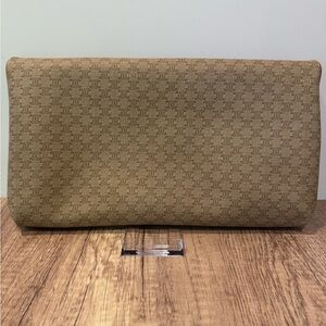 Vintage Céline Macadam Canvas Clutch Bag Brown Leather Trim Made in Italy