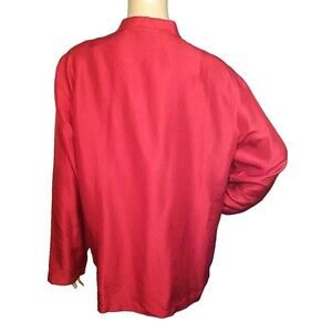 Vintage Clio 100% Silk Womens Red Asian Style Long Sleeve Blouse Sz Large T56