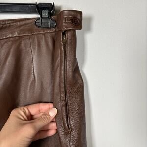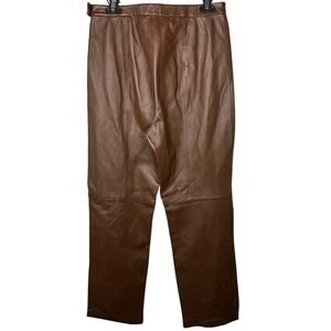 Vintage Clio Brown Leather High Waisted Y2K Straight Leg Pants Women's 14