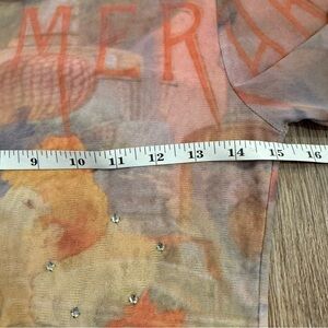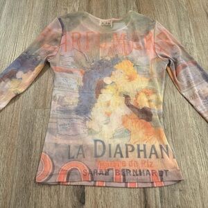 Vintage Clio Women's S Sarah Bernhardt Net Mesh Y2K Art Nouveau 3/4 Sleeve Top