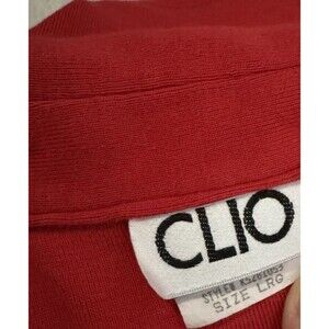 Vintage Clio Women’s Tie Front Collar RED Short Sleeve Shirt 100% Cotton- Large