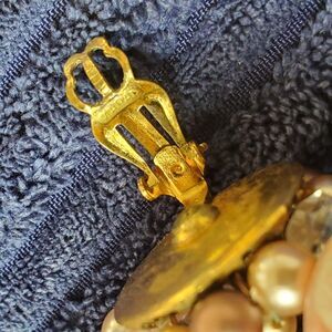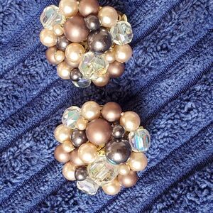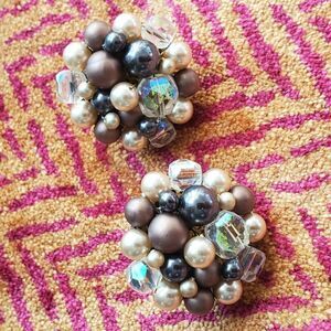 Vintage Clip Earrings Cluster Faceted Beads & Faux Pearl Grannycore Mid Century