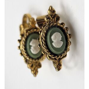 Vintage Clip On Cameo Earrings 0.75in | Materials: cameo, gold metal alloy | Length: 0.75in | Clasp: clip on | Signed? no | Excellent vintage condition