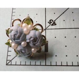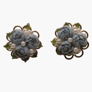 Vintage Clip On Earrings Blue Floral Faux Pearls