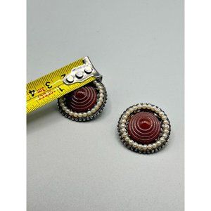 Tags: Vintage jewelry, Clip On Earrings, Brown Glass, Pointy Stones, Faux Pearls, Round Clips, round earrings, circular earrings, costume jewelry, statement earrings, fashion jewelry, unsigned beauty