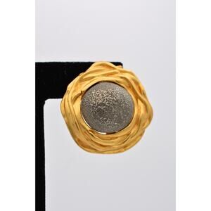 Vintage Clip On Earrings Brushed Gold Matte Brutalist Chunky Heavy 1980s BinAK