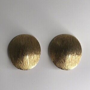 Vintage Clip On Earrings Brushed Goldtone Large Round textured 1980s FLAWED