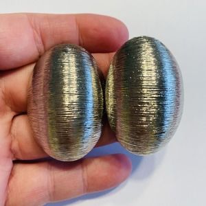 Vintage Clip On Earrings Chunky Silvertone Textured Domed Ovals Runway Jewelry