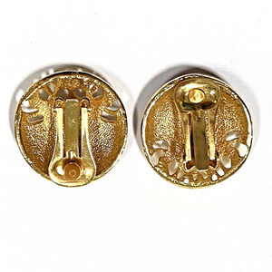 Vintage Clip On Earrings Classic 1980s Boss Lady Gold Filigree Pink Enamel Round