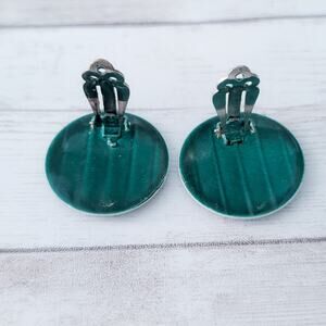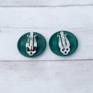 Vintage Clip On Earrings Deep Green Circle with Line Design Retro 1 & 1/8"