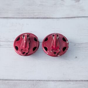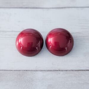 Vintage Clip On Earrings Domed Circle Deep Red 7/8"