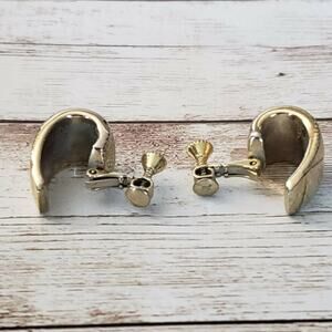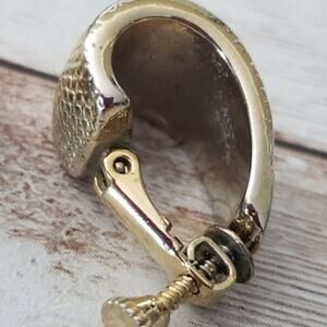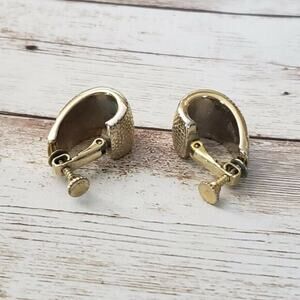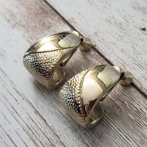 Vintage Clip On Earrings Elongated Gold Tone Hoops with Partial Pattern