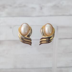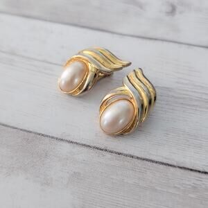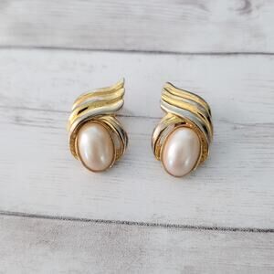 Vintage Clip On Earrings Gold Tone & Faux Pearl - Silvering