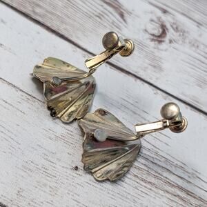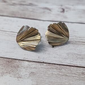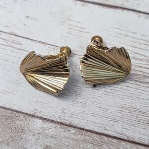 Vintage Clip On Earrings Gold Tone Folded Design