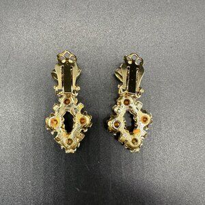 Vintage Clip On Earrings Gold Tone Green Blue Rhinestones Mid Century Jewelry