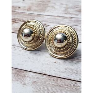Vintage Clip On Earrings - Just Over 1 & 5/8" Gold Tone Large Statement