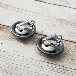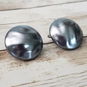 Vintage Clip On Earrings - Metallic Gray Circle 1"
