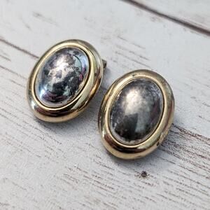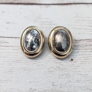 Vintage Clip On Earrings Multi Tone Oval Shape 0.75" - Tarnished
