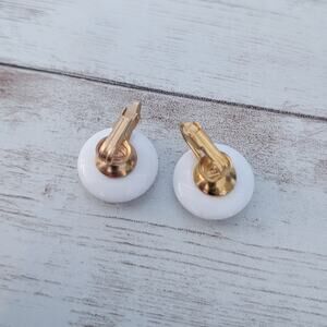 These earrings measure between 5/8-0.75". Slight discoloration and gold tone wear to clips. Light marks.