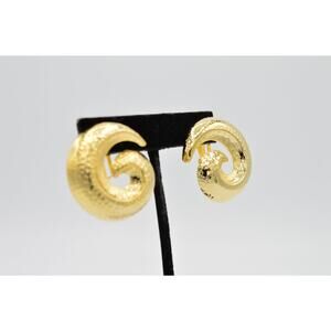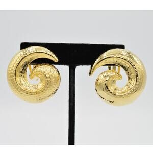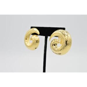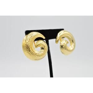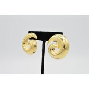 Vintage Clip On Earrings Shiny Brushed Gold Pebbled Swirl Chunky NOS 1980s 9L