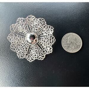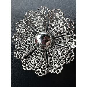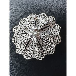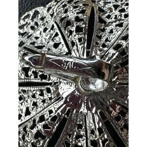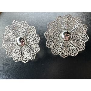 Clip On Earrings Signed Sarah Coventry Large Silvertone Flower Filigree VTG 2.17”