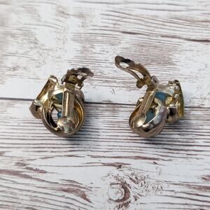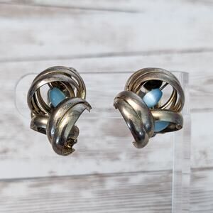 Vintage Clip On Earrings Statement Unusual Design Light Blue Accents