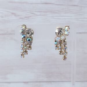 Vintage Clip On Earrings Stylish Statement Iridescent Dangle