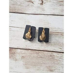 Vintage Clip On Earrings - Unusual Black & Gold Tone Diamond Pattern Design
