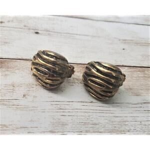 Vintage Clip On Earrings - Unusual Chunky Gold Tone with Design 1"