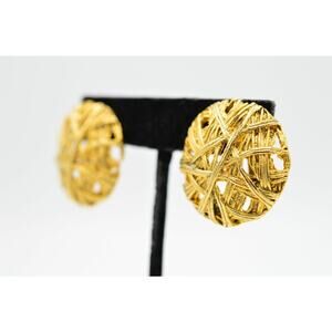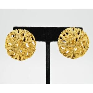 Vintage Clip On Knot Earrings Round Abstract Metal Chunky Retro NOS 1980s BinU