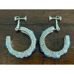 Vintage Clip On Screw Back Earrings Hoops Pave Rhinestone Blue Lapis KJL?