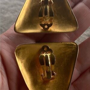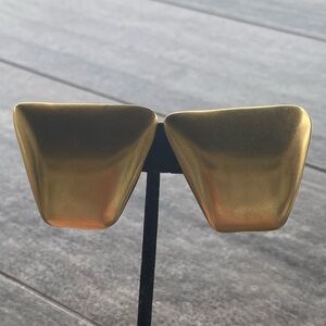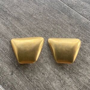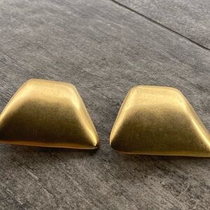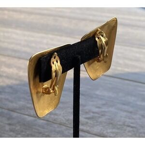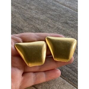 Vintage Clip Ons Earrings Geometric Trapezoid Brushed Gold Matte 80s