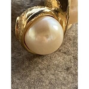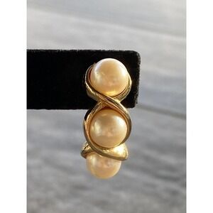 Vintage Clip Ons Earrings Three Faux Pearls Gold Tone Estate
