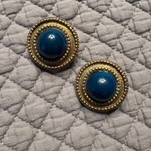 Vintage clip on earrings. Round with gold tone and blue stone.