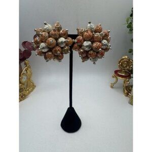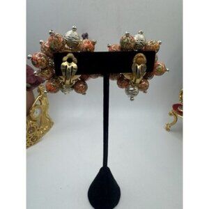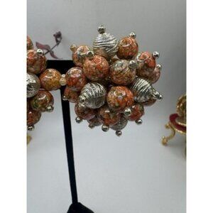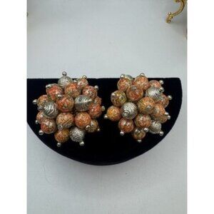 Vintage Clip-On Earrings Acrylic Orange & Gold Beads 1950s-60s Chunky Pretty