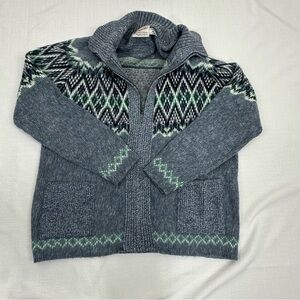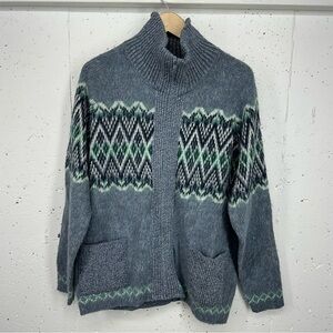 Vintage Clipper Mist Men’s Size XL Blue & Green Knit Zip Up Cardigan Sweater