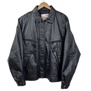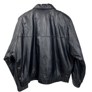 Vintage Clipper Mist by London Fog Black Leather Bomber Aviator Jacket Size 2X