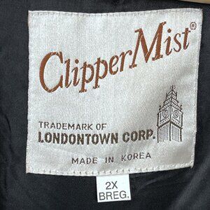 This vintage ClipperMist by London Fog bomber jacket is crafted from black leather, offering a timeless style. With its 2X size, it ensures a comfortable fit and a bold look. Perfect for any wardrobe.
