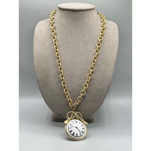 Tags: Vintage necklace, Clock Necklace, Ceramic Pendant, Textured, Chunky Chain, gold tone, Statement Jewelry, pocket watch, collectible, time watch charm, gift for her, vintage gift idea, grandma gift