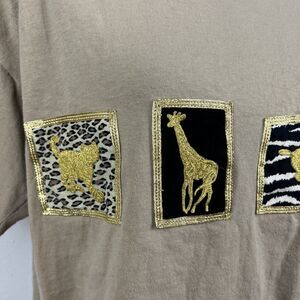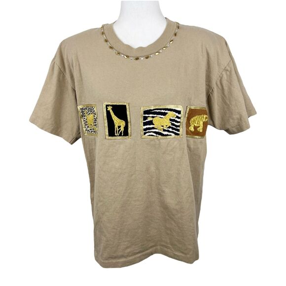 Vintage Clodia Dee Shirt Women Medium Brown Gold Cotton Animal Embroidered Tee