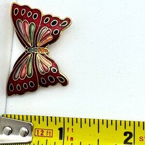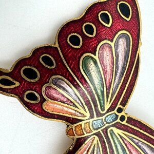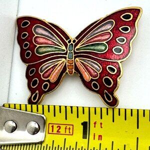 Vintage Cloisonné Butterfly Belt Buckle Bolo Tie Red Gold Purple Blue 1.5 Inch